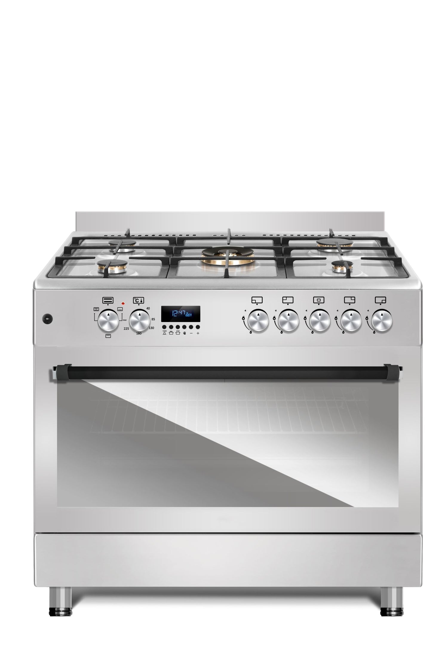 Gas&/electrical, Castiron/enamelpansupport, Double turbo fan, Mechanical/Analog/Digitaltimer, Rotisserie, Lamp, Ignition(3 button for lamp, ignition& rotisserie), FFD, NG/LPG, Limit/gasThermostat, 5/6 burners(Wok/Mini wok/Hotplateoptions), Flotal mirror door, Closed door function, Grill forelectrical models, Coolingfan, Telescopicrail, Cathaliticenamel cavity, Dishwarmer, Wokadapter with cast iron pan support, softclose, Bottle compartment option
